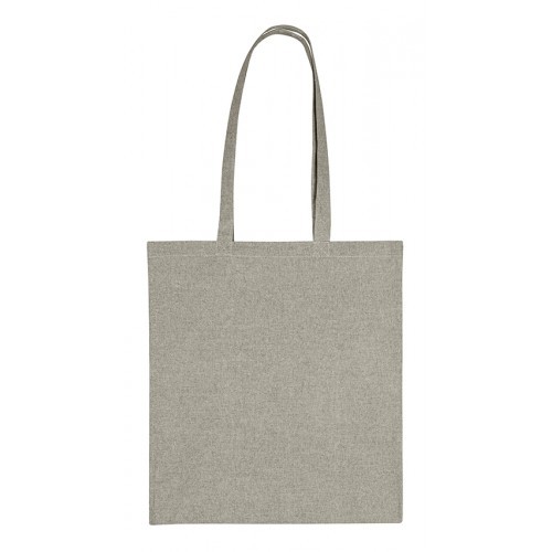 Katoenen draagtas gemaakt van 140 grams lichtgrijs gerecycled katoen. De draagtas is voorzien van 2 schouderhengsels die zijn aangestikt aan de binnenzijde van de draagtas.