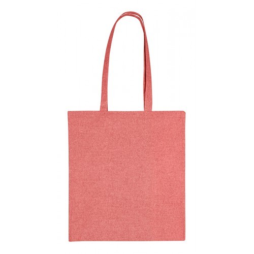Katoenen draagtas gemaakt van 140 grams rood gerecycled katoen. De draagtas is voorzien van 2 schouderhengsels die zijn aangestikt aan de binnenzijde van de draagtas.