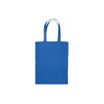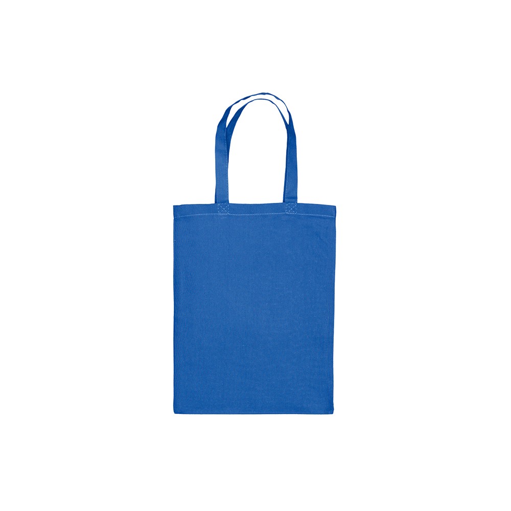 Katoenen draagtas gemaakt van 140 grams blauw katoen. De draagtas is voorzien van 2 korte handgrepen die zijn aangestikt aan de binnenzijde van de draagtas.