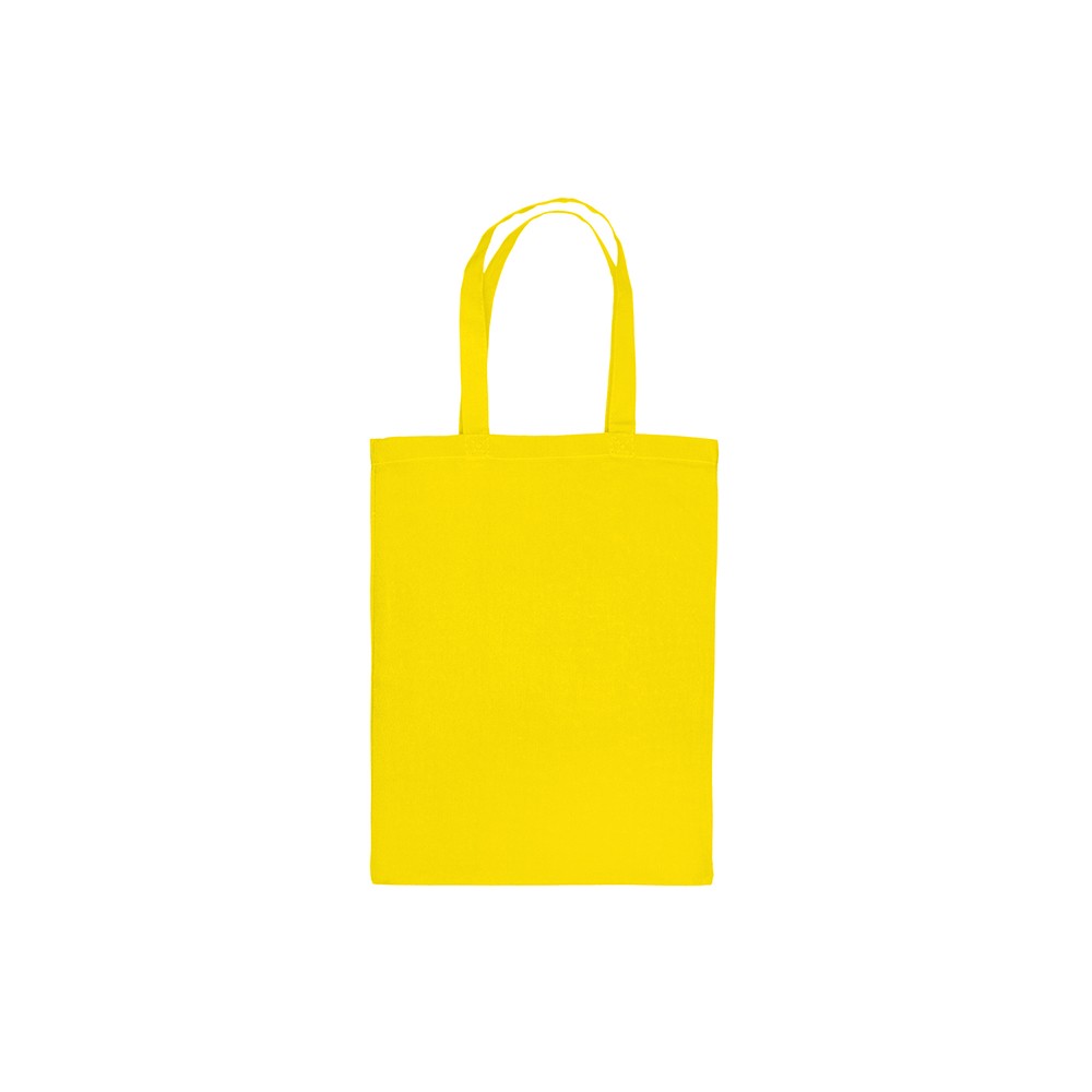 Katoenen draagtas gemaakt van 140 grams geel katoen. De draagtas is voorzien van 2 korte handgrepen die zijn aangestikt aan de binnenzijde van de draagtas.