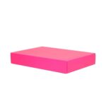Luxe tweedelige geschenkdoos gemaakt van 500 g/m² roze mat gelamineerd karton. De luxe geschenkdoos wordt plano (ruimtebesparend) in 2 delen geleverd en is eenvoudig te assembleren.