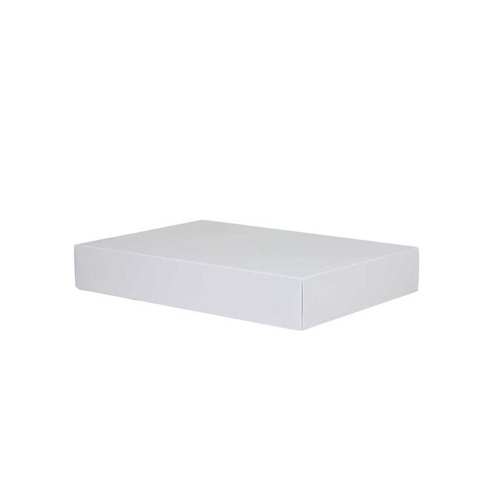 Luxe tweedelige geschenkdoos gemaakt van 500 g/m² wit mat gelamineerd karton. De luxe geschenkdoos wordt plano (ruimtebesparend) in 2 delen geleverd en is eenvoudig te assembleren.