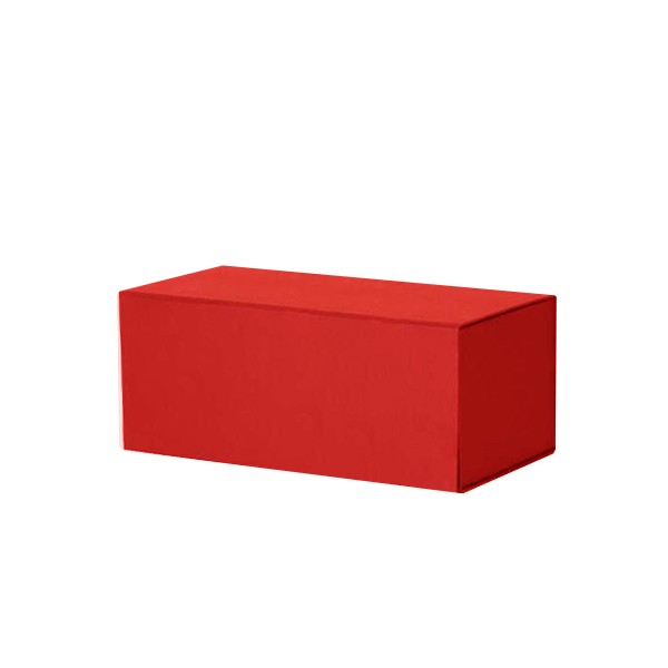 Luxe magneetdoos met automatische montage en magnetische klepsluiting, gemaakt van stevig karton van 1200 g/m², aan de binnen- en buitenkant bedekt met 120 g/m² rood geverfd kraftpapier, voor een totaal van 1440 g/m². De luxe magneetdoos is voorzien van zelfklevende strips die zorgen voor een permanente montage. De luxe magneetdoos wordt plano en dus ruimtebesparend geleverd.