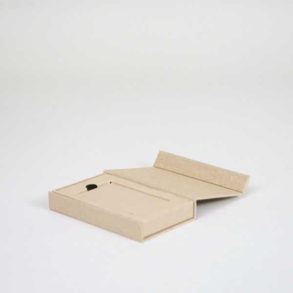 De luxe magneetdoos, 12x2x7 cm – bruin kraft – voor kadobon, klantenkaart of creditcard, met inlay, heeft een sluitende magnetische klep en is gemaakt van hard karton van 1200g/m² en bevat een kartonnen steunstuk.