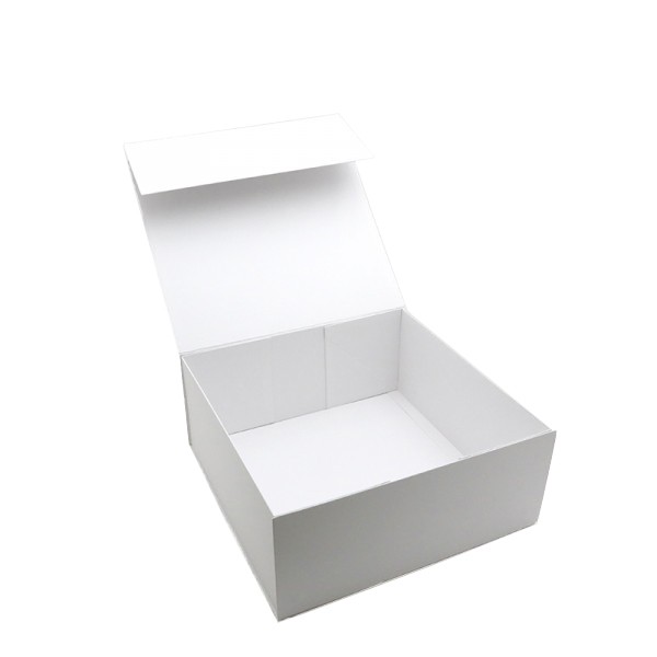 Luxe magneetdoos met automatische montage en magnetische klepsluiting, gemaakt van stevig 1200 g/m² wit karton. De luxe magneetdoos is voorzien van zelfklevende strips die zorgen voor een permanente montage. De luxe magneetdoos wordt plano en dus ruimtebesparend geleverd.