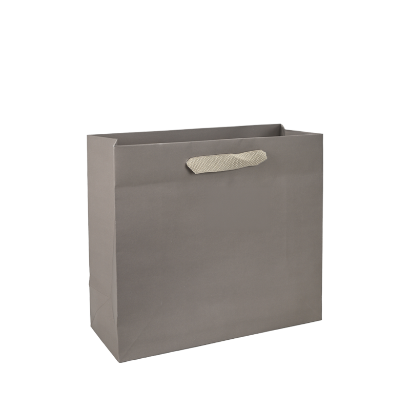 Luxe papieren draagtas – katoenen linten – omgeslagen bovenrand – Taupe