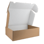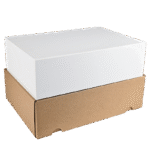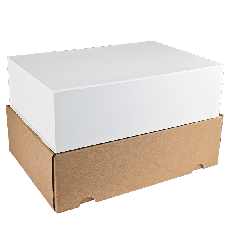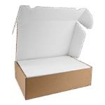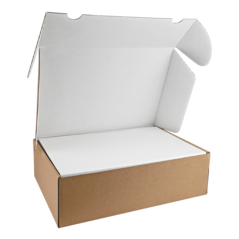 Deze verzenddoos heeft een natuurlijke bruine buitenzijde en een strakke witte binnenzijde. De doos is ontworpen voor optimale bescherming tijdens transport en biedt een luxe uitstraling bij het openen.