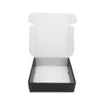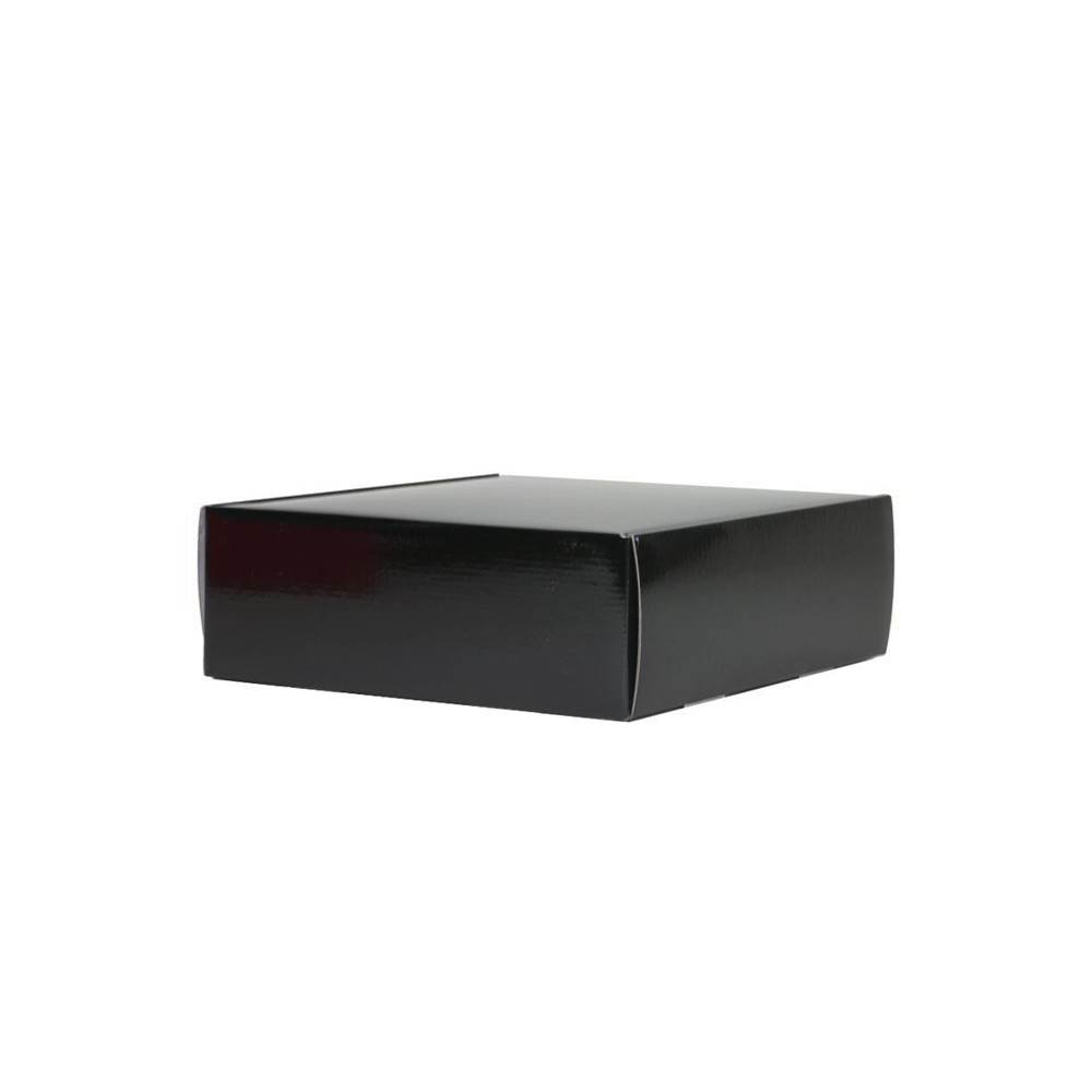 Luxe verzenddoos gemaakt van 700 g/m2 zwart bedrukt golfkarton met een dikte van 2 mm en voorzien van een krasbestendig glans laminaat. De luxe verzenddoos wordt eendelig plat geleverd en is zeer gemakkelijk in elkaar te zetten.