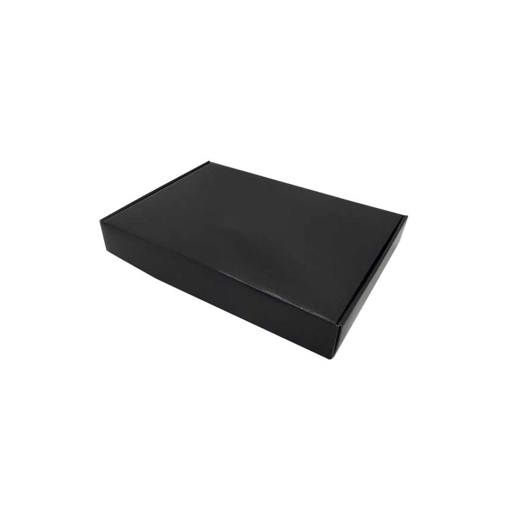 Luxe verzenddoos gemaakt van 700 g/m2 zwart bedrukt golfkarton met een dikte van 2 mm en voorzien van een krasbestendig glans laminaat. De luxe verzenddoos wordt eendelig plat geleverd en is zeer gemakkelijk in elkaar te zetten.