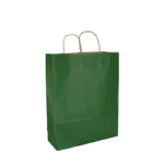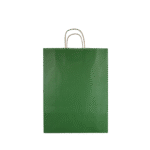 Groen bedrukte papieren draagtas gemaakt van gestreept bruin kraft. Verkrijgbaar in 5 maten. De draagtas is voorzien van 2 bruine gedraaide papieren handgrepen die zijn ingeplakt aan de binnenzijde van de draagtas. De binnenzijde van de tas is bruin.