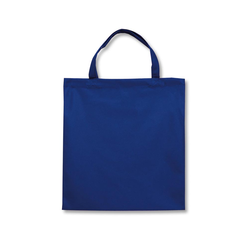 Polyester draagtas gemaakt van 120 grams blauw polyester. De draagtas is voorzien van 2 korte blauwe handgrepen die zijn aangestikt aan de binnenzijde van de draagtas.