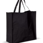 PP woven glans gelamineerde draagtas gemaakt van 160 grams zwart woven polypropyleen. De draagtas is voorzien van twee korte zwarte handgrepen die zijn aangestikt aan de binnenzijde van de draagtas.